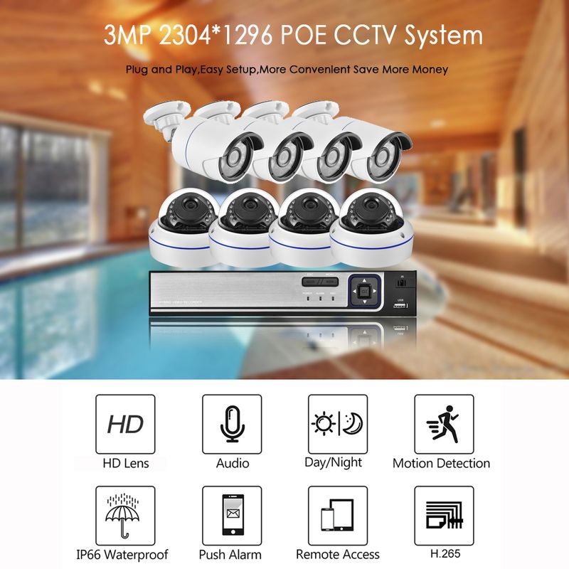 AZISHNH.265 8CH 3MP POE NVR Kit Audio Sound CCTV System 3.0MP Dome Security IP Camera P2P Indoor Outdoor Video Surveillance Set