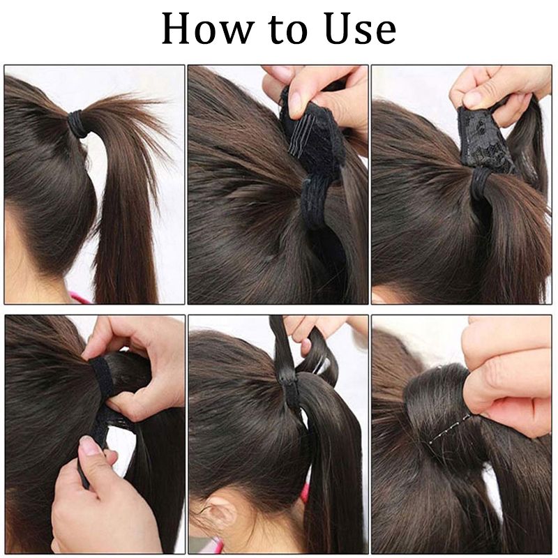 AZQUEEN Synthetic Corn Wavy Long Ponytail Hairpiece Wrap on Clip Hair Extensions Ombre Brown Pony Tail Blonde Fack Hair