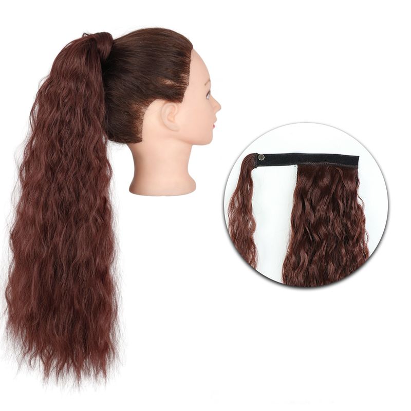 AZQUEEN Synthetic Corn Wavy Long Ponytail Hairpiece Wrap on Clip Hair Extensions Ombre Brown Pony Tail Blonde Fack Hair