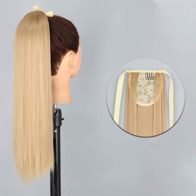 AZQUEEN Synthetic Corn Wavy Long Ponytail Hairpiece Wrap on Clip Hair Extensions Ombre Brown Pony Tail Blonde Fack Hair