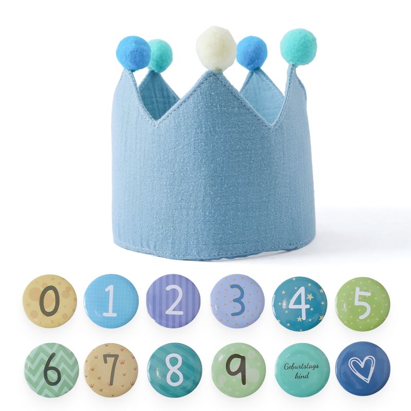 Baby Birthday Party Hat Set Crown Woolen Ball Headband Hat Banner Cake Birthday for Kids Party Photography Props 0-9 Years Gifts