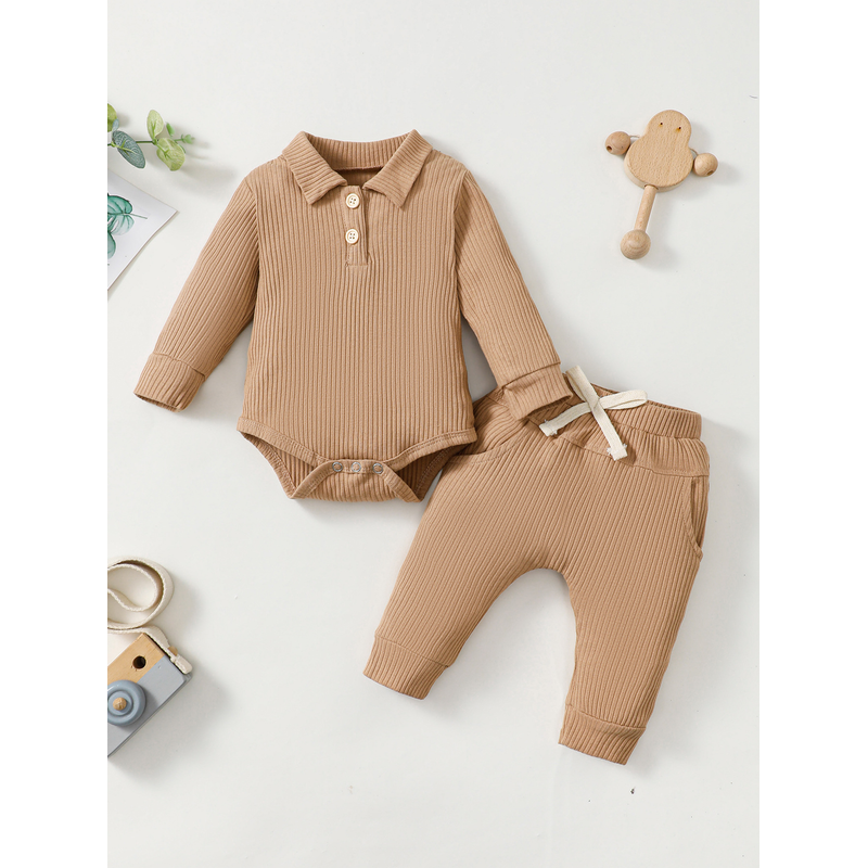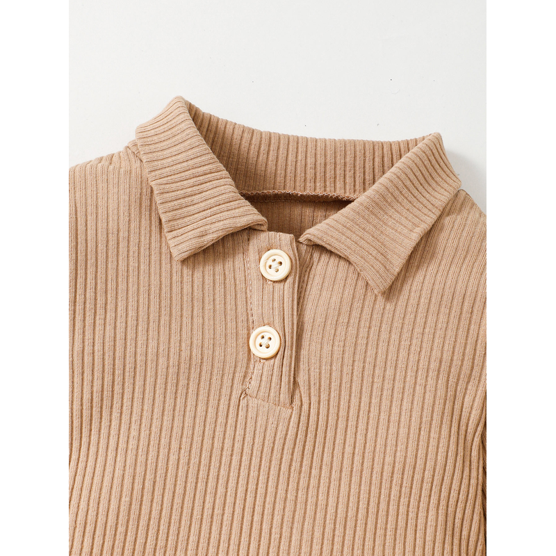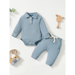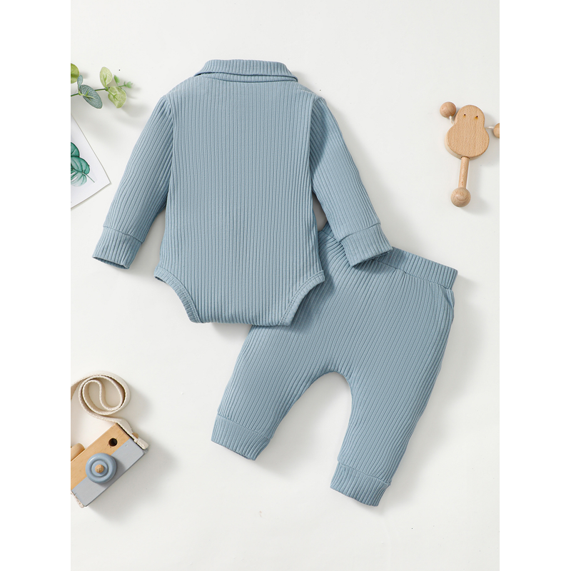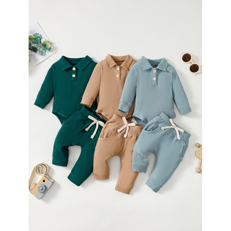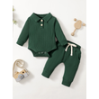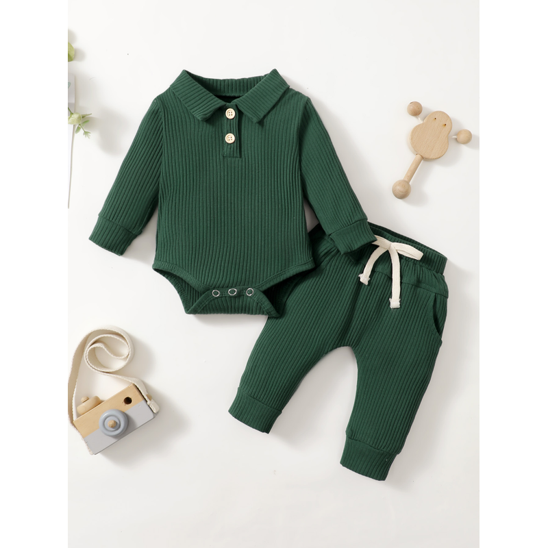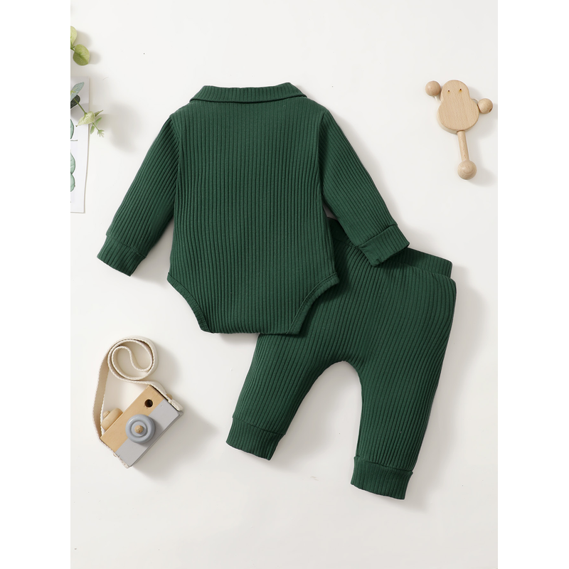 Baby Boy Cotton Hollow Striped Polo Shirt Trousers Suit Dark Green 60cm