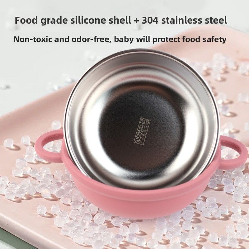 Baby Feeding Bowl Stainless Steel Plate Bowl Spoon Silicone Suction Cup Silicone Tableware For Kids Silicone Children Tableware