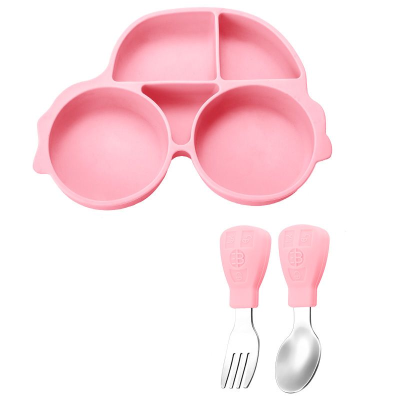 Baby Feeding Dishes Silicone Suction Cup Plate Cute Car Non-Slip Baby Food Feeding Bowl for Children