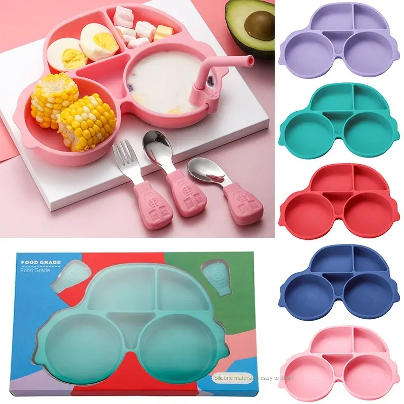 Baby Feeding Dishes Silicone Suction Cup Plate Cute Car Non-Slip Baby Food Feeding Bowl for Children