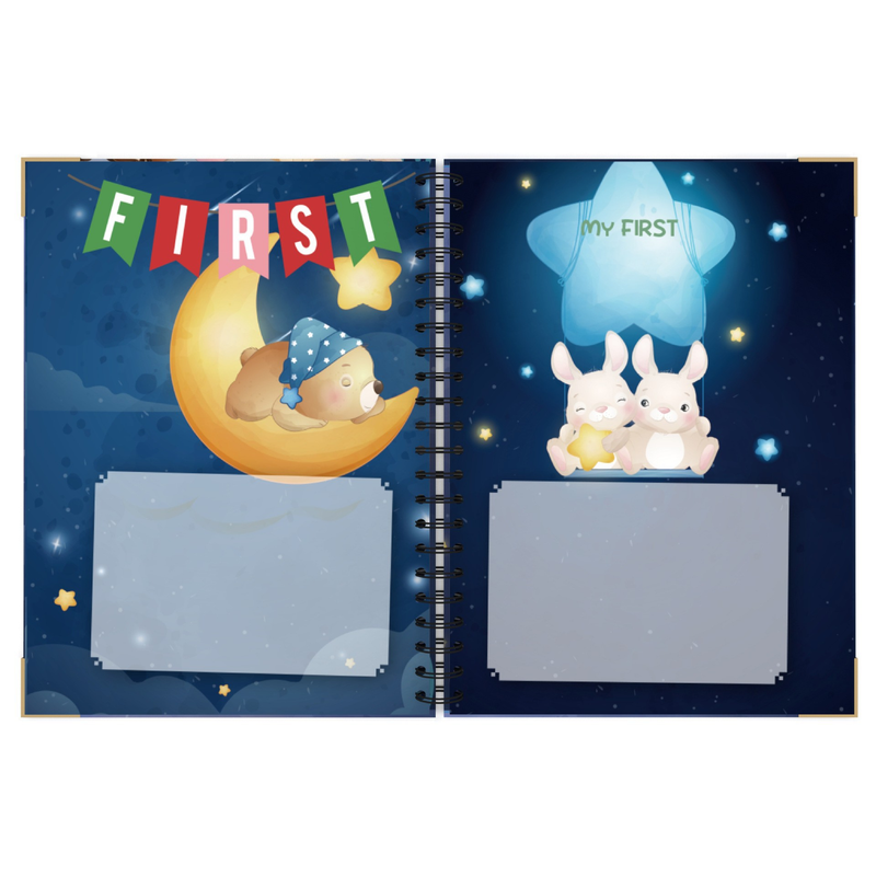 Our beautiful baby memory book will help you to create the perfect baby keepsake for your baby boy or baby girl. New parents are guided through the first year of the child's journey with photo and writing spaces to document monthly birthday pages, and records ultrasound pictures, baby showers, growth chat and first bubble bath and so much more!