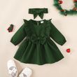 Baby girl Autumn Dress Ruffled Edges and Bow, Long sleeved Dress+Headband for 0-18 Months Cute Baby girl Holiday Party Costume