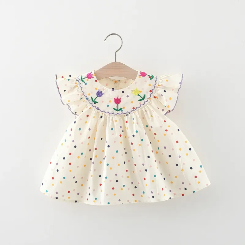Baby Girl Dress Summer Colorful Polka Dot Flower Embroidery Girls Princess Dress Cute Girls Beach Dresses