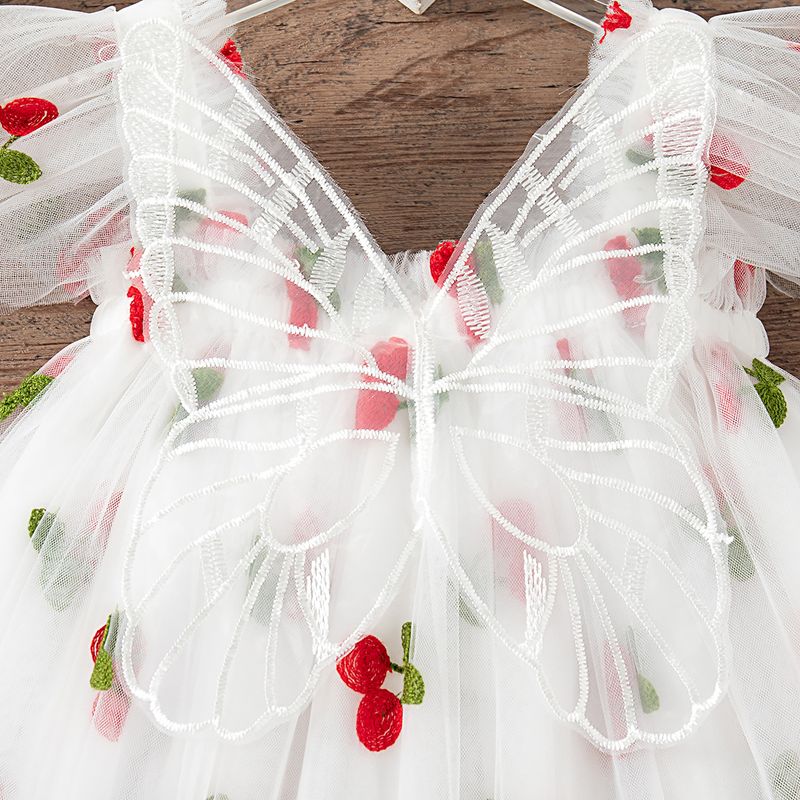 Baby Girl Dress Summer Fruit Flower Print Cute Bow Back Decoration Baby Girl Dress Princess Style Birthday Party Baby Girl Dress