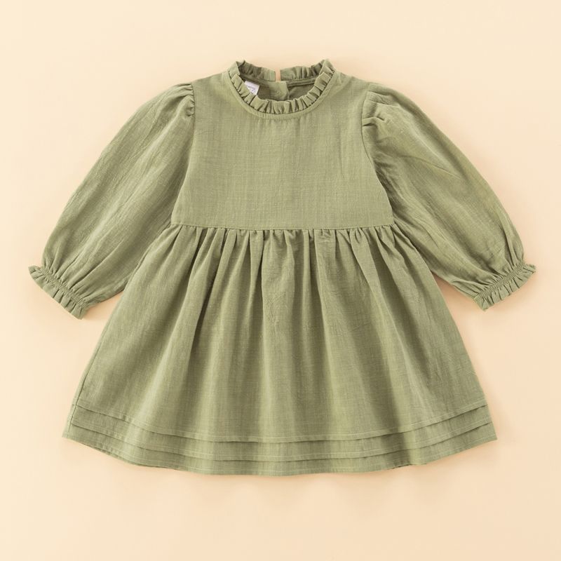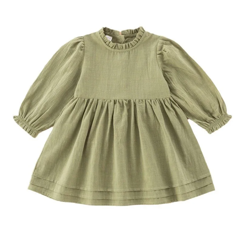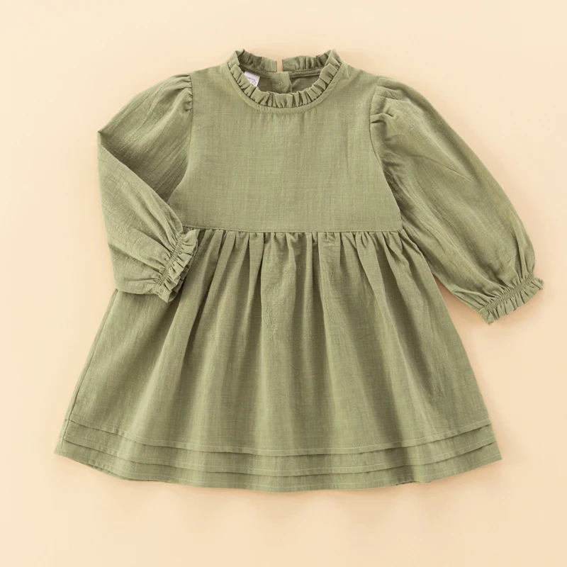Baby girl dress toddler cotton linen girls dress child clothing comfy soft long sleeve pullover dress