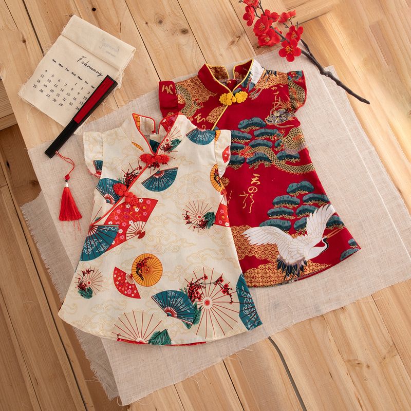 Baby Girl Dresses Summer Chinese Style Printed Cotton Girls Dresses Cute Hanfu Cheongsam Baby Clothing Baby Clothes Girl