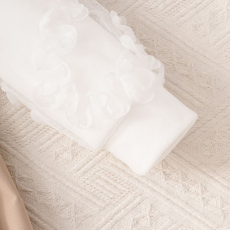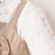 Baby Girl Light Brown Two-Piece Set with White Lace Long Sleeve Top And Overalls Patchwork Large Bowknot Autumn Fashion Dress
