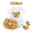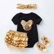 Baby Girl Minnie Mickey Clothing Set Kids Short Sleeve Black White Romper Gold Bloomer Panties Shoes Headband Outfit 0-2 Years