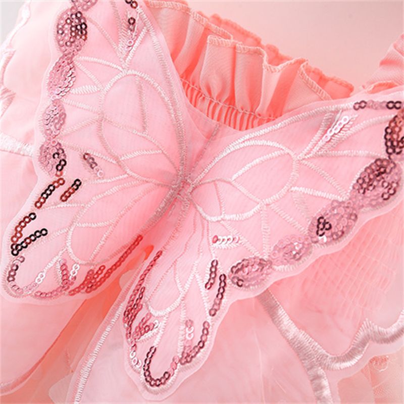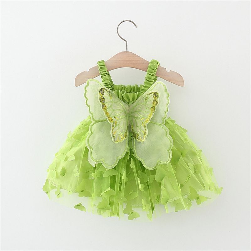 Baby Girl Party Dress Princess Birthday Dress Back Bow Wing Embroidery Mesh Solid Color Strap Mesh Dress 0-3 Years Old