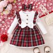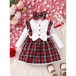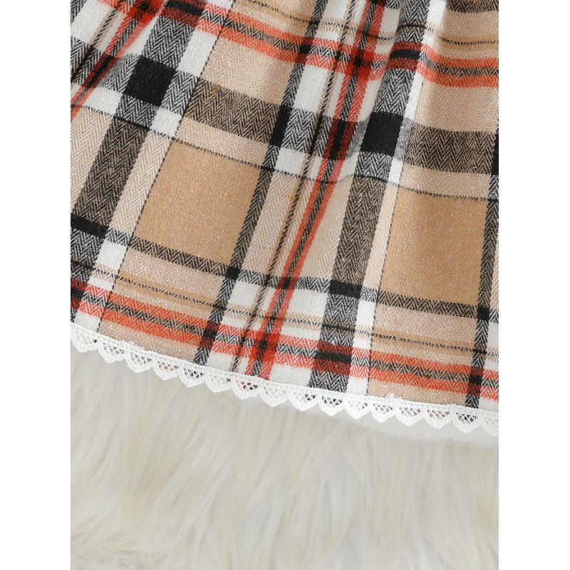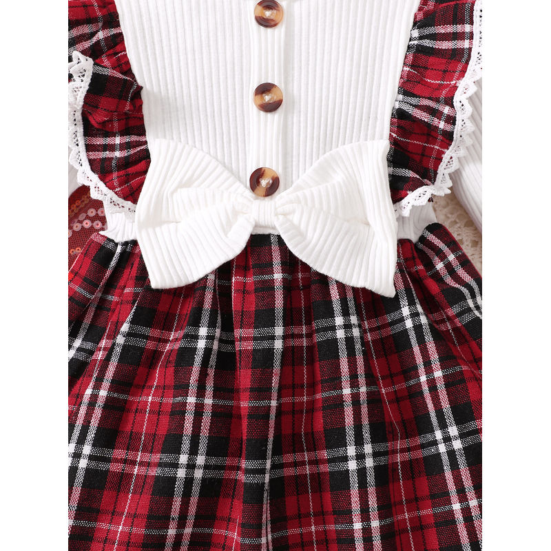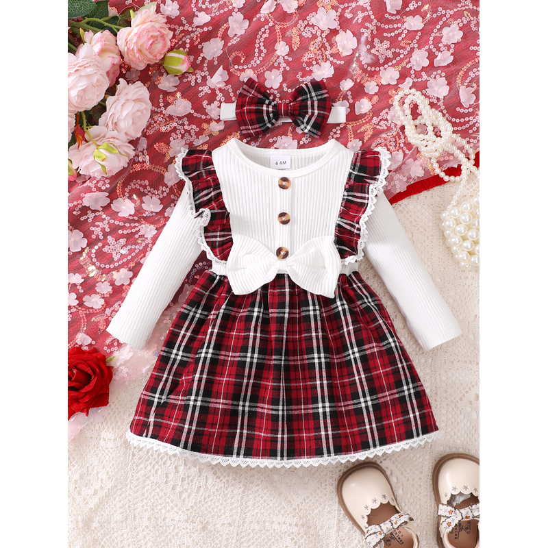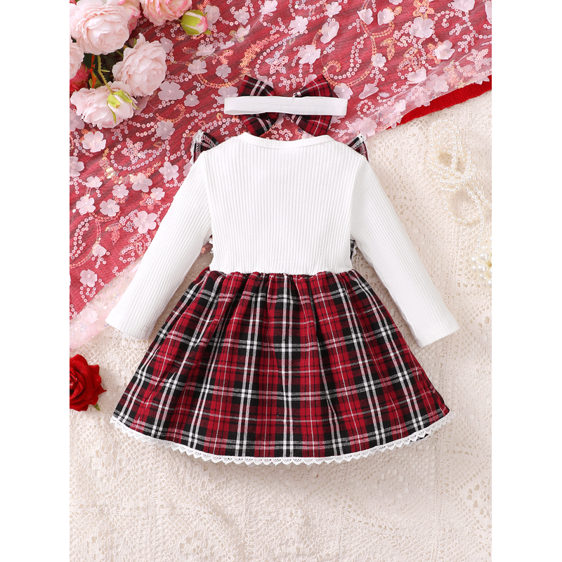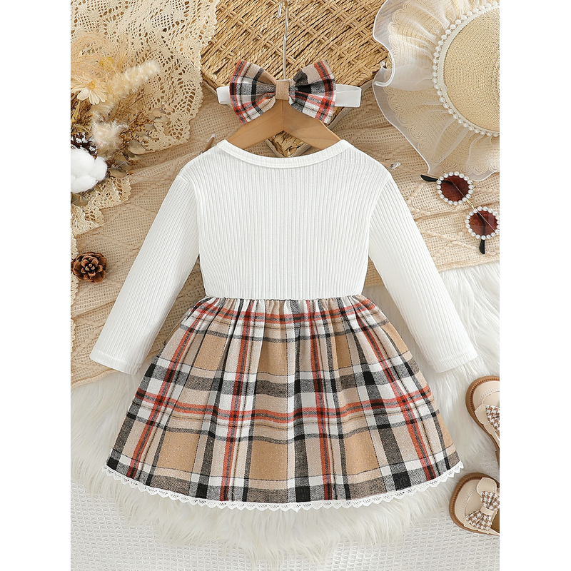 Baby girl's new fashionable plaid patchwork groove lace design bow dress and headband