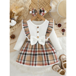 Baby girl's new fashionable plaid patchwork groove lace design bow dress and headband