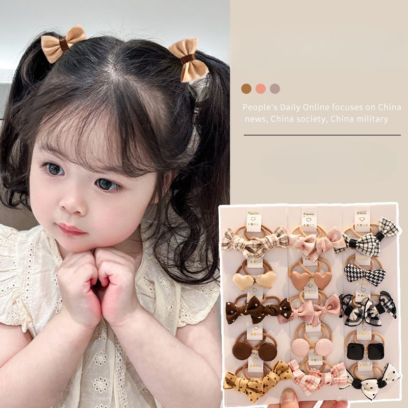 Baby Girls Bowknot Geometric Pattern Ornament Elastic Hair Band Children Sweet Soft Scrunchies Rubber Band Kids Hair Accessories