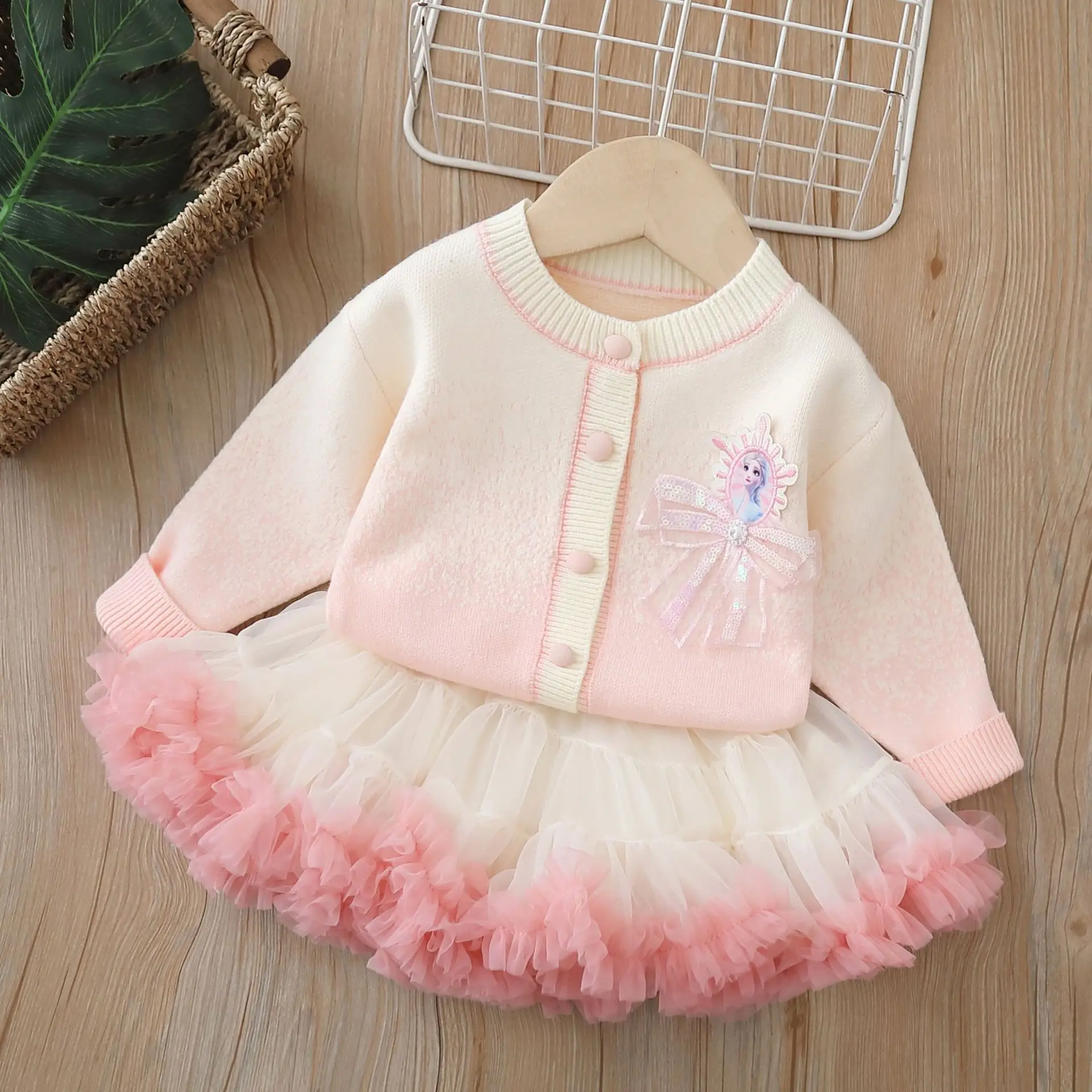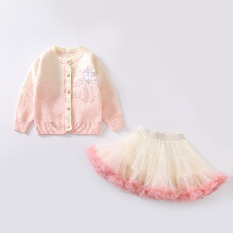 Baby Girls Dresses Sets Autumn Winter Kids Frozen Elsa Knitted Cardigan Coats Tutu Skirts 2pcs Children Princess Costumes Outfit