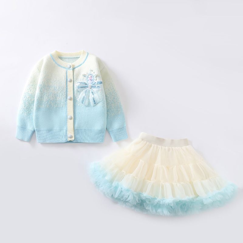 Baby Girls Dresses Sets Autumn Winter Kids Frozen Elsa Knitted Cardigan Coats Tutu Skirts 2pcs Children Princess Costumes Outfit