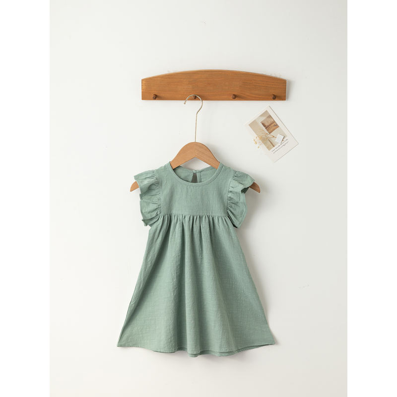 Baby Girls' Flying Sleeve Dress Tie-back Overall Dress Cotton Kids Casual Clothes Summer 2024