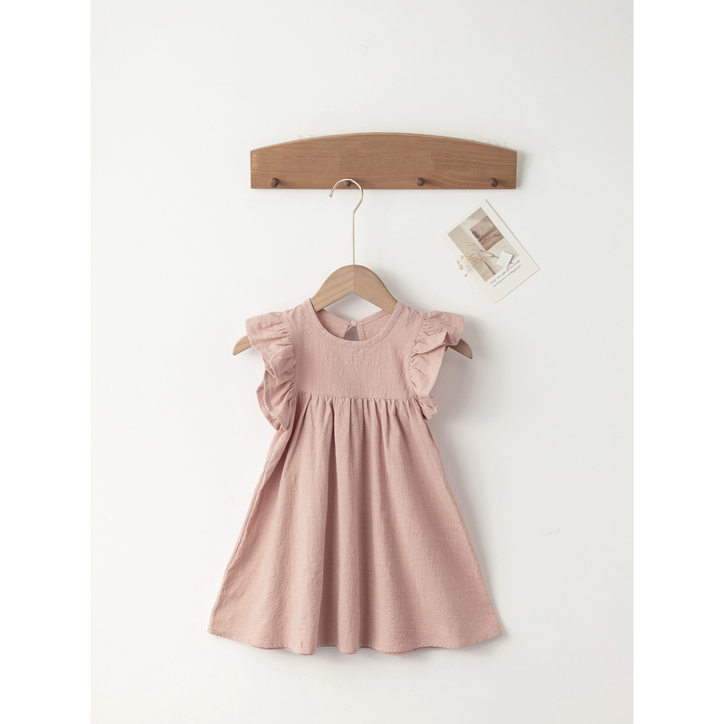 Baby Girls' Flying Sleeve Dress Tie-back Overall Dress Cotton Kids Casual Clothes Summer 2024