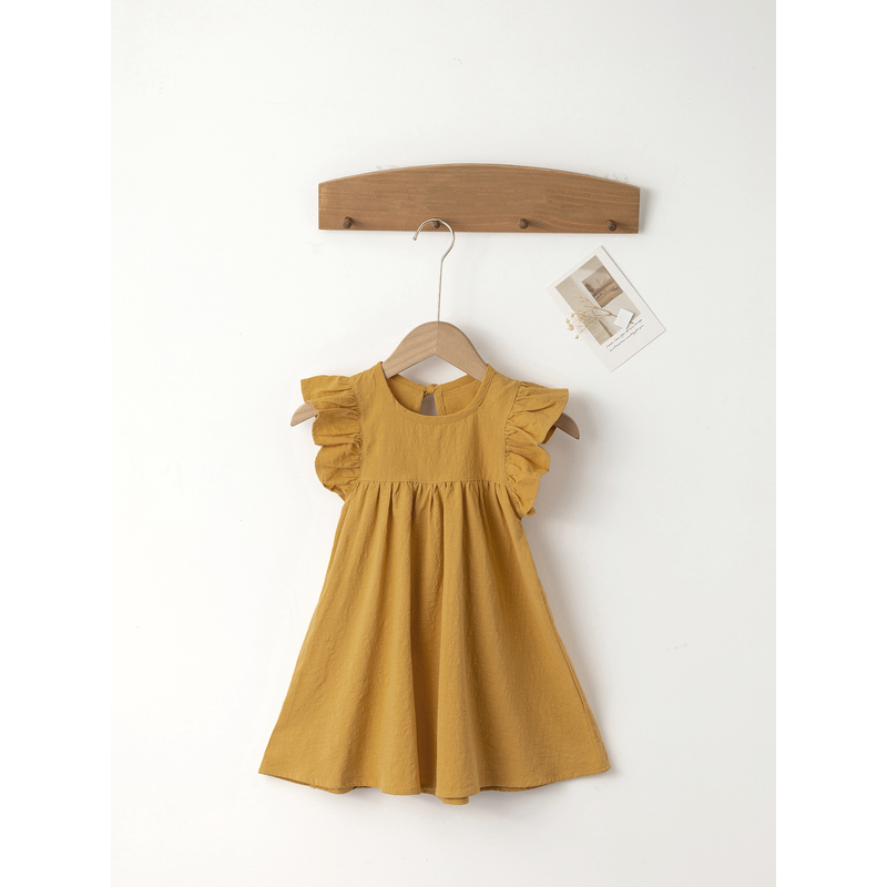 Baby Girls' Flying Sleeve Dress Tie-back Overall Dress Cotton Kids Casual Clothes Summer 2024