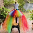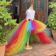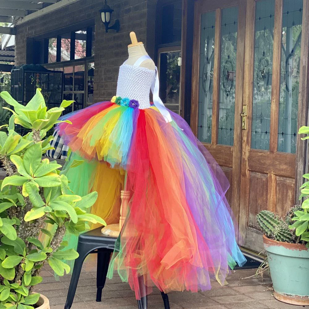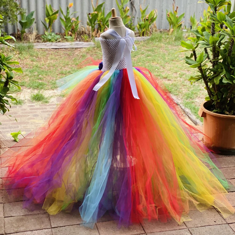 Baby Girls Rainbow Color Trailing Tutu Dress Kids Crochet Flower Tulle Dress Ball Gown Children Evening Party Costume Dresses
