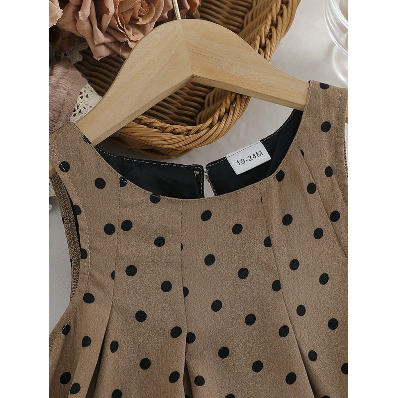 Baby Girls Sping/Summer 2025 Sleeveless Fashion Polka Dot Vintage Casual Dress For 1-6Y Children Outdoor Clothing