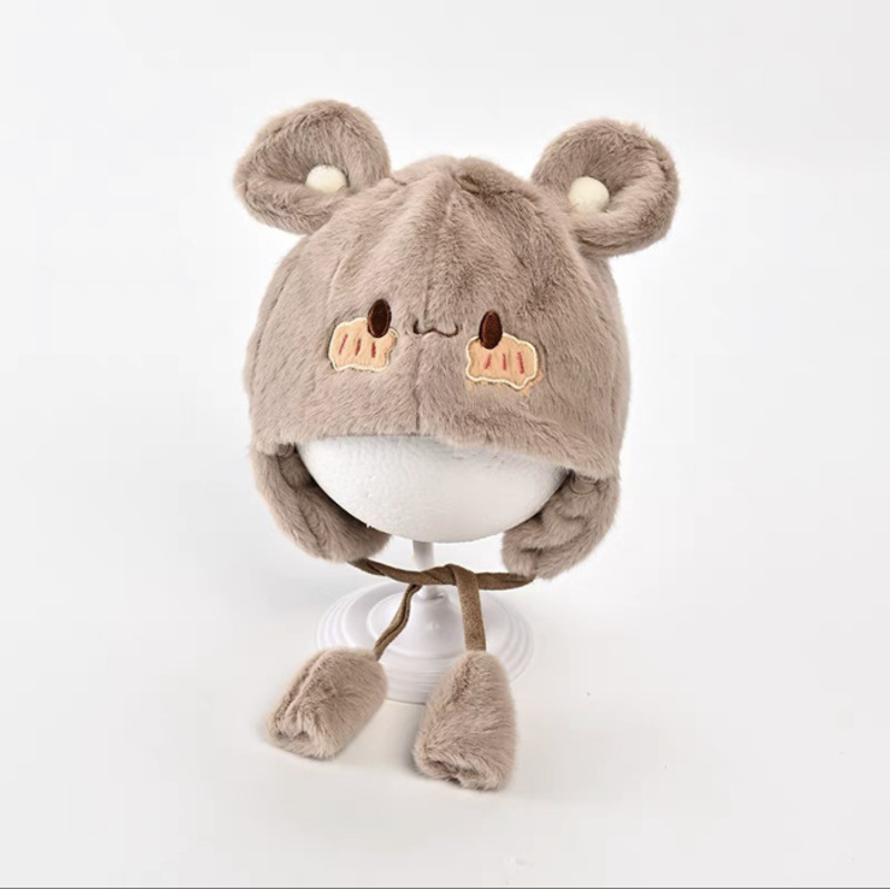 Color: beige -- small eyes, blue gray -- small eyes, pink -- small eyes, khaki -- small eyes, brown -- bear, pink -- bear, Blue Gray -- bear, beige -- shy bear,