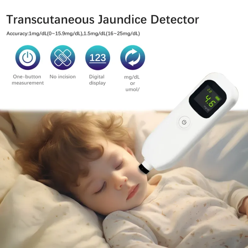 Transcutaneous Jaundice Detector L11C transcutaneous jaundice detector is a hand-held instrument for clinical dynamic examination of neonatal jaundice. It takes use of the correlation between percutaneous bilirubin concentration and serum bilirubin concentration, Noninvasive and immediate detection measurement prevent the discomfort of neonate blood drawing and reduces detection cost while increases clinicians working efficiency.