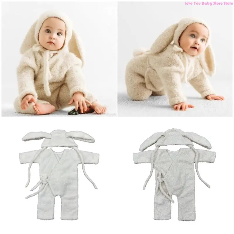 Baby Photography Costume Clothing Rabbit Theme Hat and Romper Photo Clothes Photography Props for Infant 0-1 Year 195F