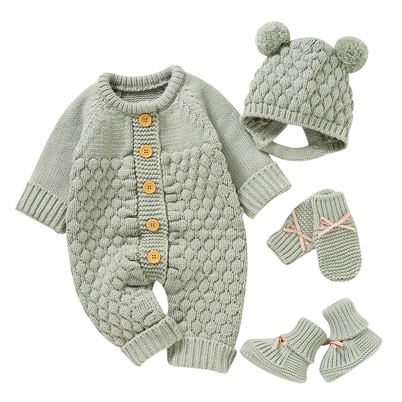 Baby Rompers Clothes Autumn Winter Knitted Newborn Boys Girls Solid Plain Jumpsuits Fashion Solid Plain Toddler Kids Unisex Wear