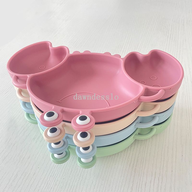 Baby Safe Sucker Silicone Dining Plate Solid Cute Crab Children Dishes Suction Toddle Training Tableware Kids Feeding Bowls