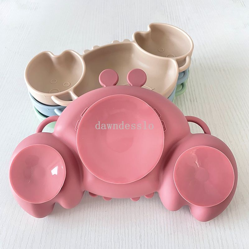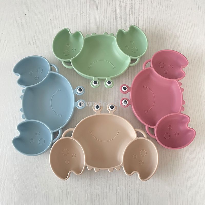 Baby Safe Sucker Silicone Dining Plate Solid Cute Crab Children Dishes Suction Toddle Training Tableware Kids Feeding Bowls