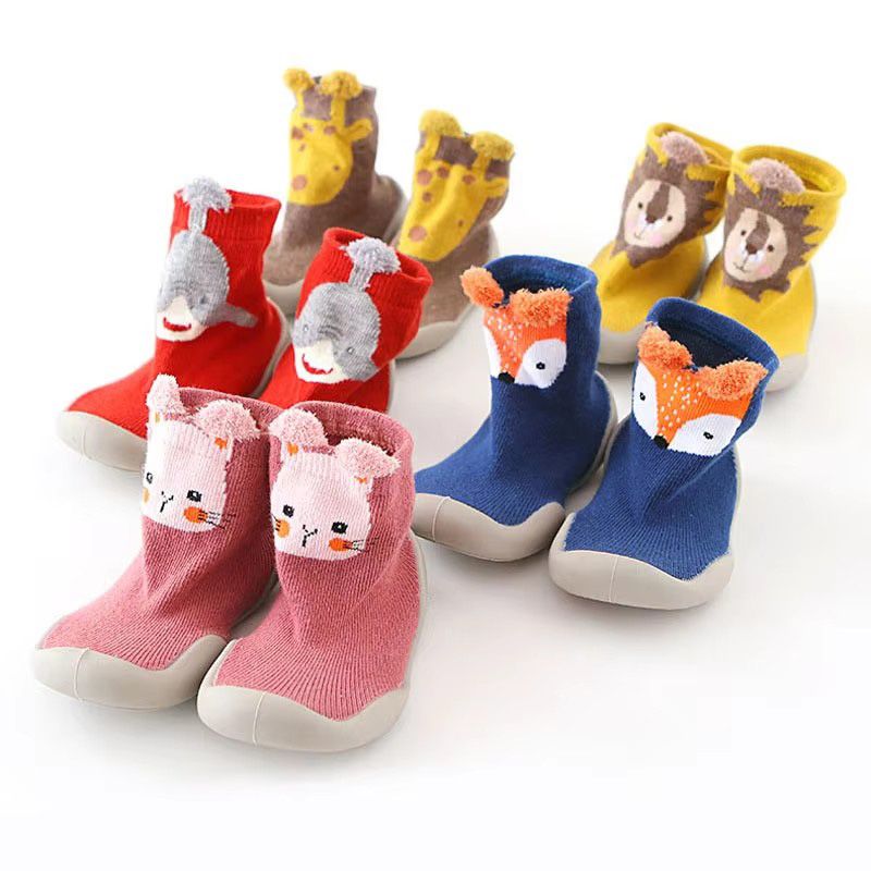 Baby Socks Shoes Kids Toddler First Walkers Animal Pattern Soft Non-Slip Sole Breathable Rubber Floor Shoes for Boys and Girls