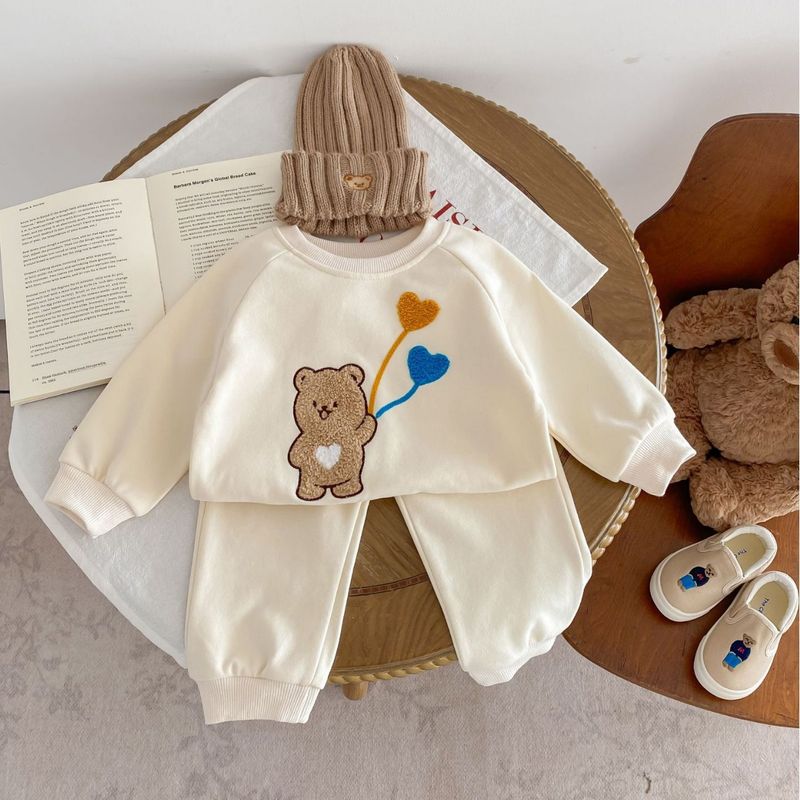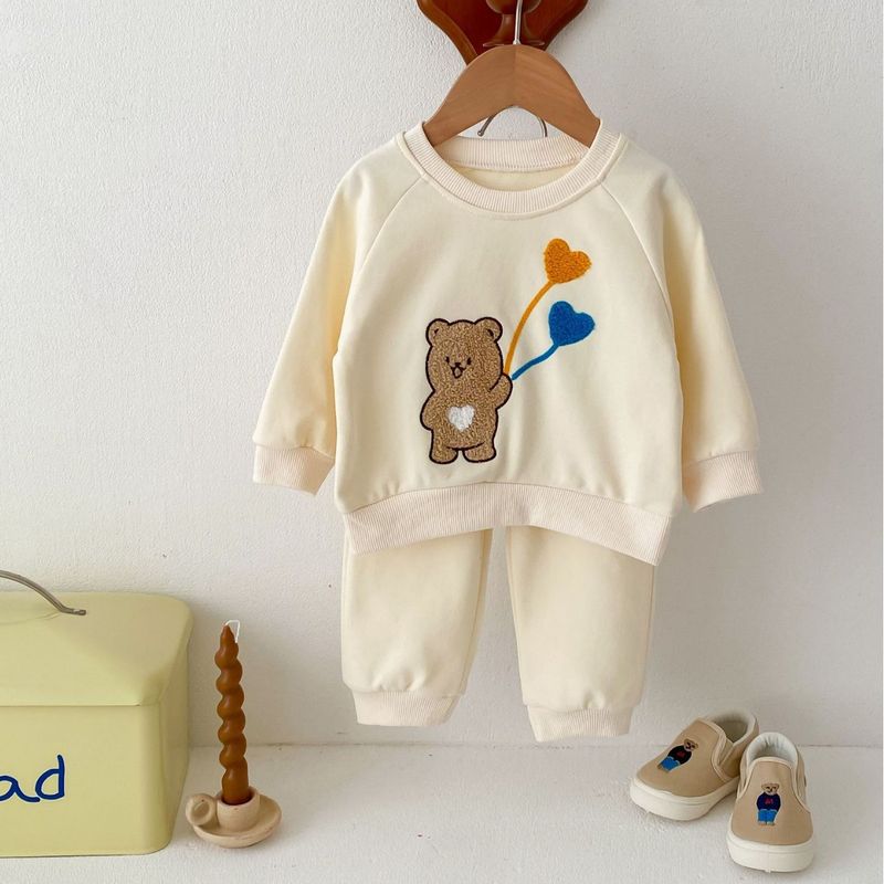 Baby Suit Cute Bear Ball Long-sleeved Sweater Trousers Light Beige 80cm