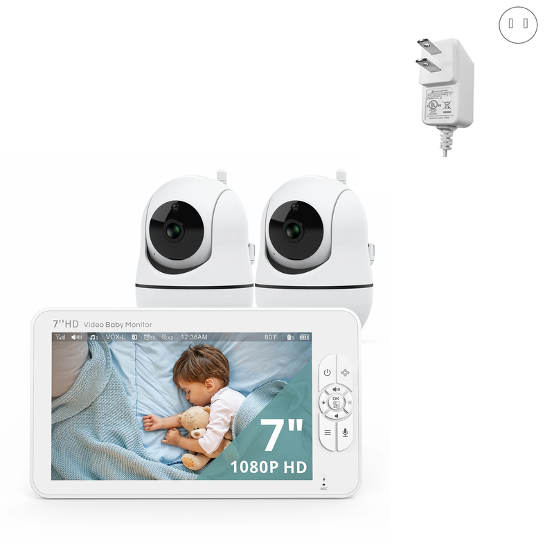 【7” 1080p HD Split Screen with 2 Cameras】- The 7” HD 1080p resolution color screen coupled with sharp pictures with 10x details and an enlarged screen with 3.3x display area than ordinary 3.5” 240p LCD baby monitors, allowing you to keep an eye on your baby more clearly. Moreover, the 2 cameras and split-screen function provide you with the perfect option to view 2 rooms side by side on the screen. Need a closer look? The bonoch baby monitor with 2x to 4x zoom capability is always there for you.