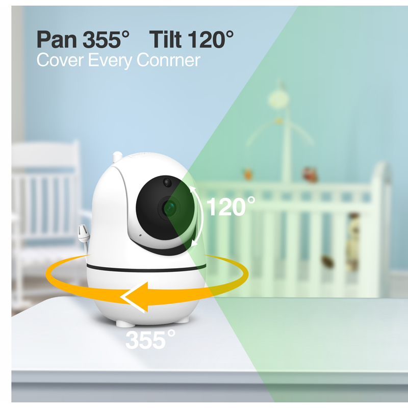 【Entire Room Coverage】- The baby camera monitor lens pans 355° to capture all corners of a space, and tilts 120° to see floor to ceiling. If your baby escapes the crib, you'll be able to see it all happening. Get a clear and stable live stream from anywhere in your home with wireless coverage.
