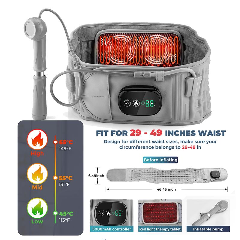 1.Inflatable belt with controller, inflatable traction + fixed support + red light heating + vibration massage multi-effects in one, take care of your lumbar spine in many ways.
