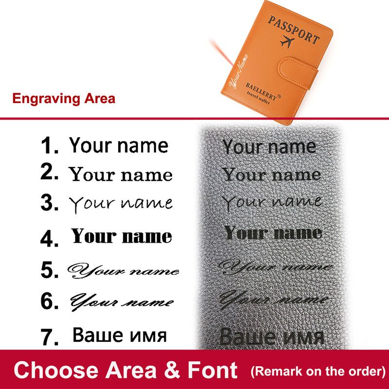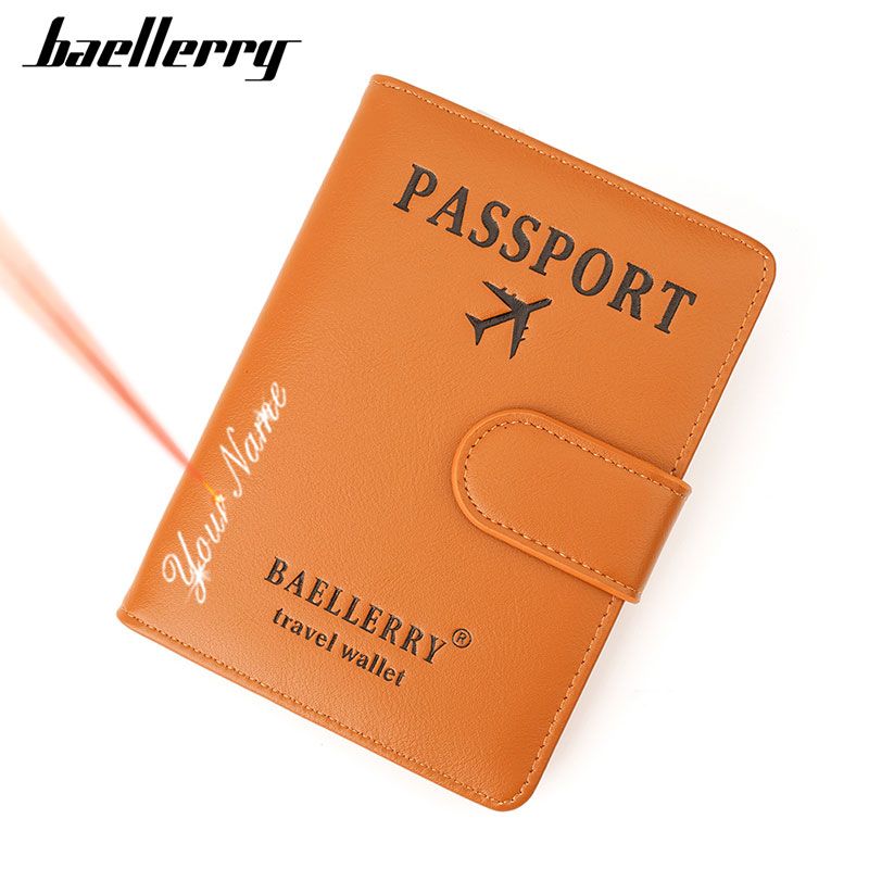 Baellerry New RFID Passport Cover Men Wallets Name Engraving Credit Card Holder Simple Woman Purses Unisex Travel Passports Case
