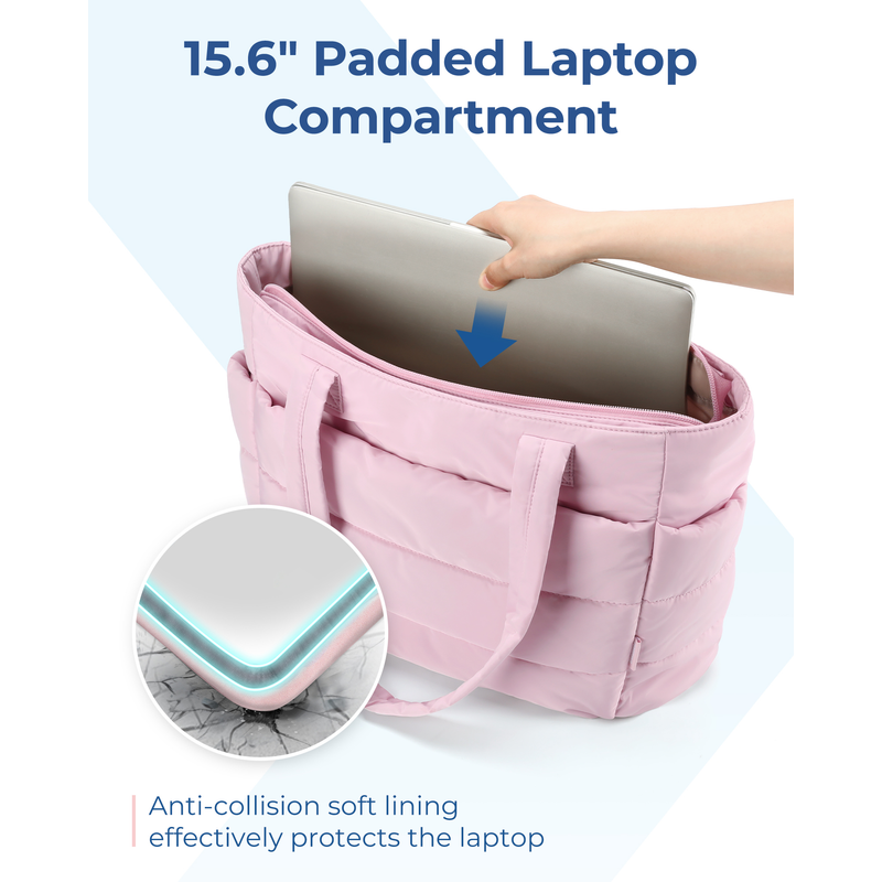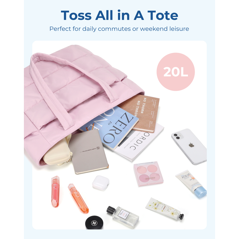 Compact Size: Size: 16.1'' x 6.1'x 12.2'', Capacity 20L. The quilted tote bag suitable daily necessities such as 15.6'' laptops, Umbrella, water cup, power banks, clothes, shoes, etc. The zipper closure design ensures the safety.