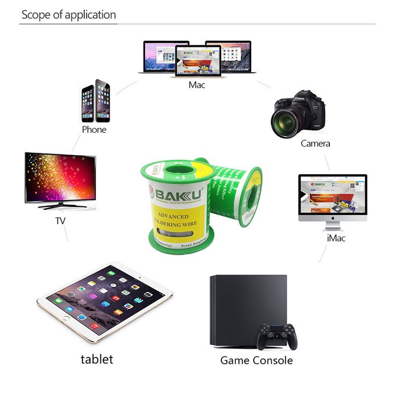 BAKU Advanced Soldering Wire Tin Rosin Core Silver Copper Lead Free Solder Welding Wire Roll Flux 0.2 mm, 0.3 mm, 0.4 mm, 0.5 mm, 0.6 mm for Choice