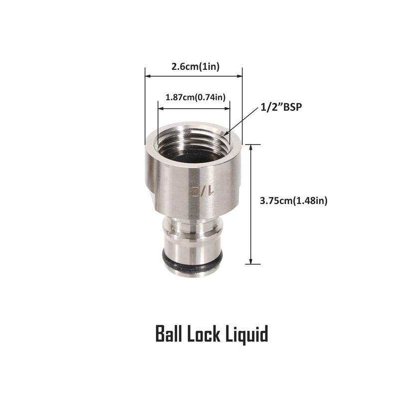 This adapter is made from stainless steel 304. The end thread is 1/2"BSP female. You can convert your 1/2"BSP parts to be compatible with the wildly used in the cornelius beer style.