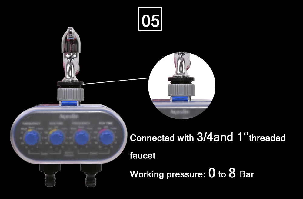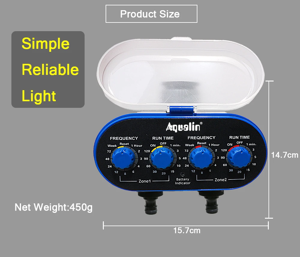 • Four Dials Water Timer :The product has four dials that allow you to set the watering schedule to your liking, ensuring that your plants get the right amount of water at the right time.
