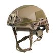 The outer side of the helmet is provided with a deployable railing.