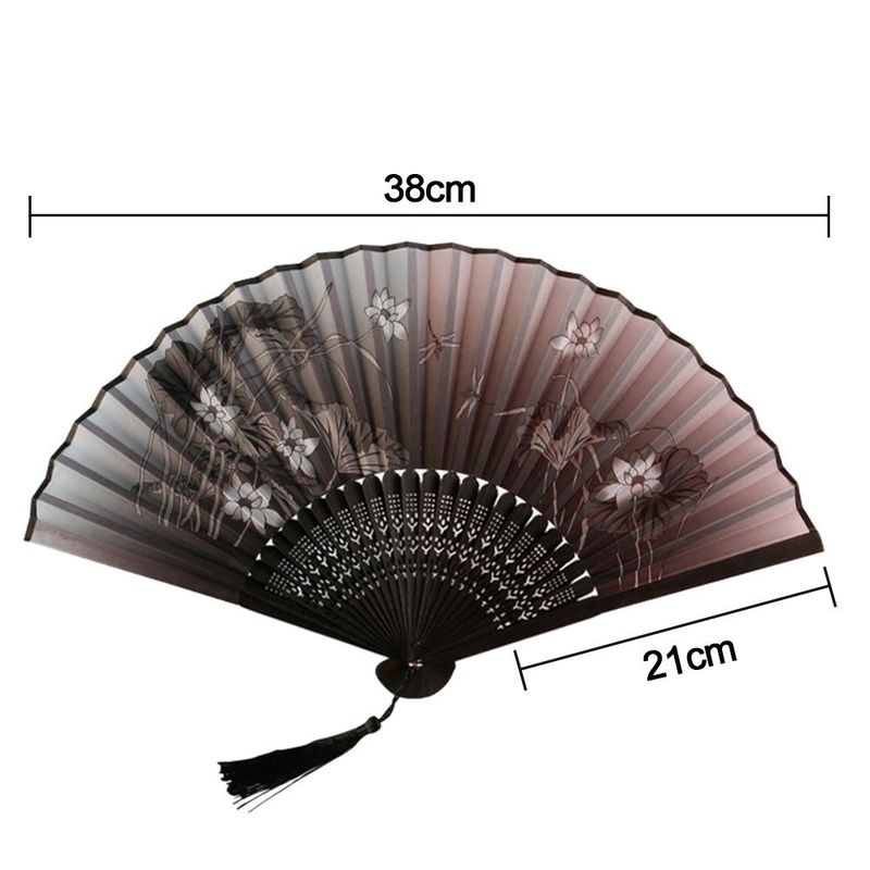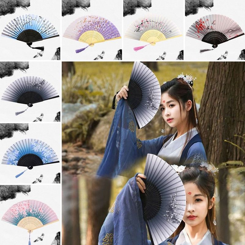 Bamboo Chinese Japanese Folding Fan Colorful Tassel Elegent Female Fan Vintage Style Folding Fan Silk Hand Fan