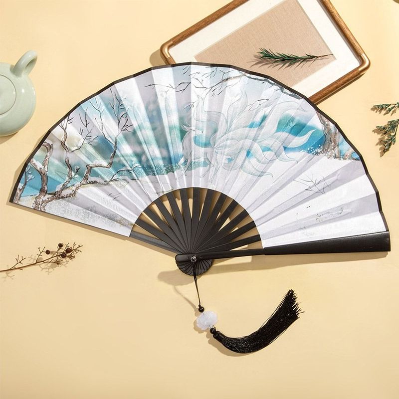 Bamboo Chinese Japanese Folding Fan Colorful Tassel Elegent Female Fan Vintage Style Folding Fan Silk Hand Fan