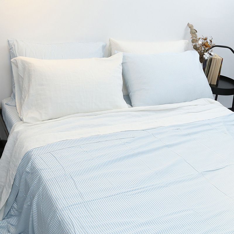 Bamboo Fiber Light Luxury And Simplicity Solid Color Bed Suit Light Blue Stripe Full