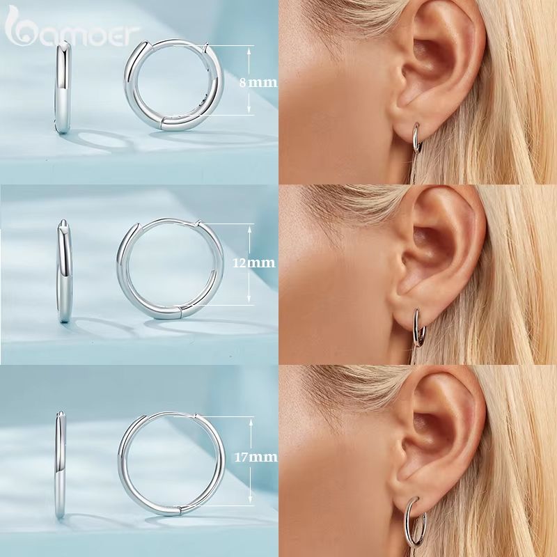BAMOER 925 Sterling Silver Minimalist Huggie Hoop Earrings, 18K Gold Plated Cartilage Piercing Daily Earrings Ear Cuff for Women