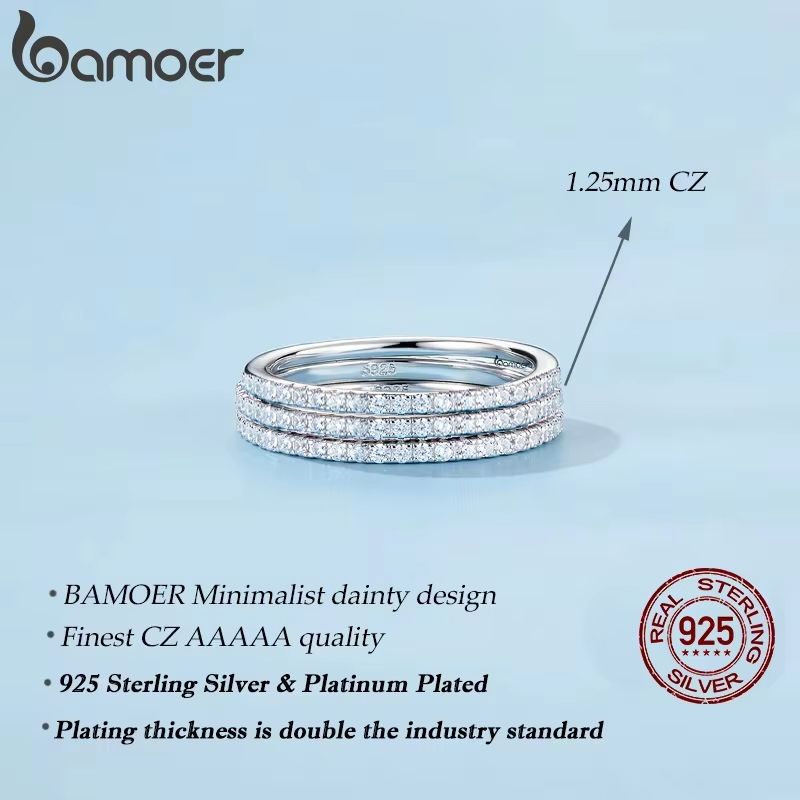 BAMOER White Gold Plated Solid 925 Sterling Silver CZ Simulated Diamond Stackable Ring Eternity Bands for Women
